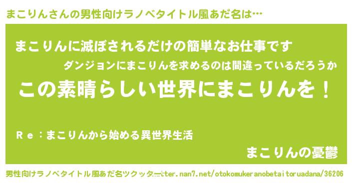 | 女子向けラノベタイトル風あだ名 | 『悪役まこりんに転生したようですが、知った事ではありません』 |