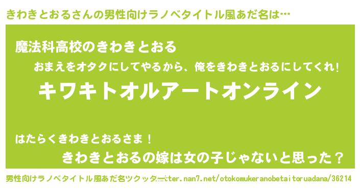 | ヒーロー風カッコイイあだ名 | 『スーパーキワキトオル』『天弓騎士キワ』 |