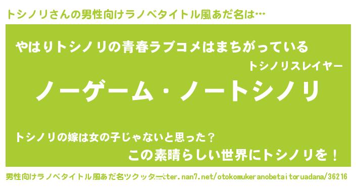 | 女子向けラノベタイトル風あだ名 | 『トシノリ恋絵巻』『トシノリ様がみてる』 |