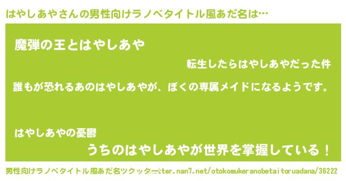 | 胡散臭い通販商品みたいなあだ名 | 『前代未聞の水素水…その名も「はやしあや」』 |