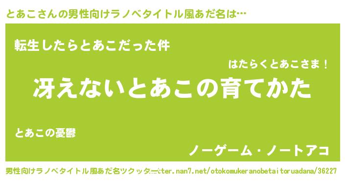| 欧米人風あだ名 | 『とあこ・ステッグマイヤー』 |
