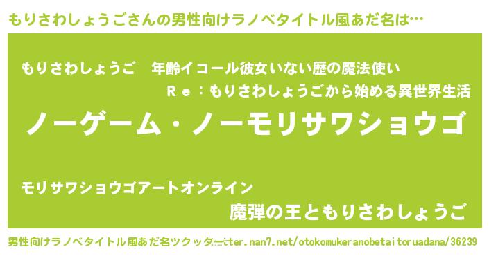 | 胡散臭い通販商品みたいなあだ名 | 『モンドセレクションを受賞したイリジウム磁石…その名も「もりさわしょうご」』 |