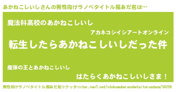 | ヘコむあだ名 | 『あかもー』『あかねこしいし(遠い目)』 |