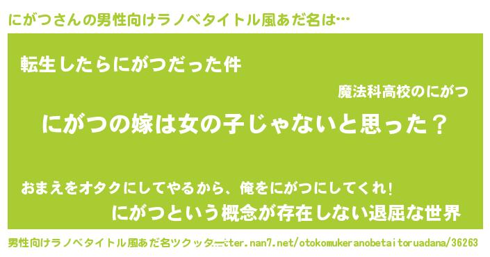 ヘコむあだ名 | 『にがっちょ』『にがつ(笑)』『牛乳』 |