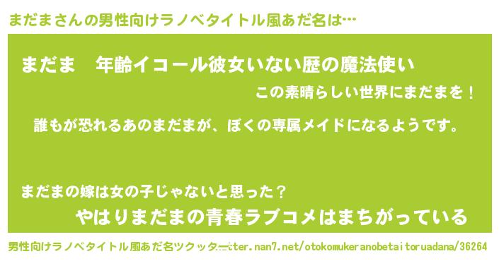 | 女子向けラノベタイトル風あだ名 | 『異世界でカフェまだまを開店しました。』 |