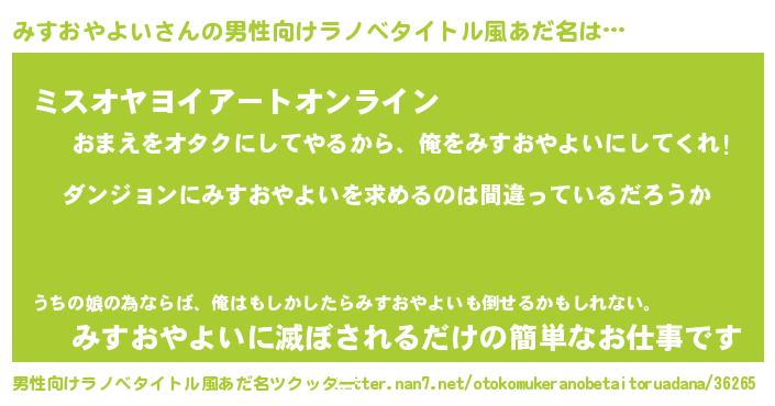 | 女子向けラノベタイトル風あだ名 | 『みすおやよいは平凡を望む』 |