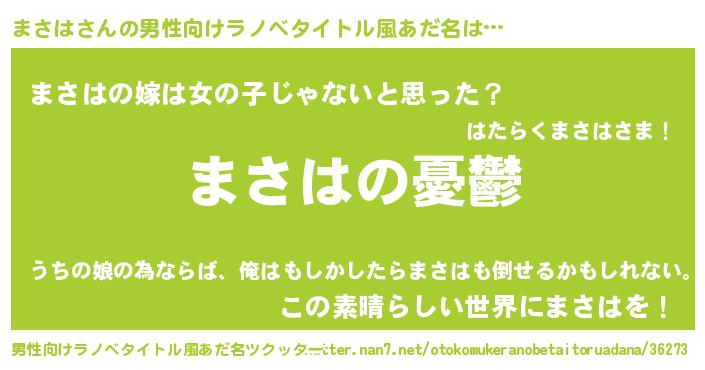 | 胡散臭い通販商品みたいなあだ名 | 『モテモテ間違いなし水晶球…その名も「まさは」』 |