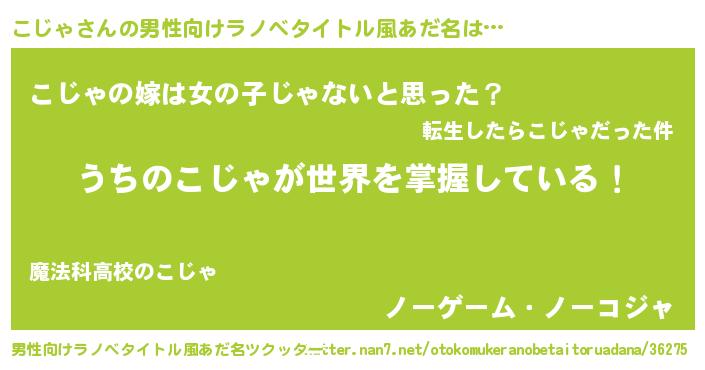 | 胡散臭い通販商品みたいなあだ名 | 『全米が絶賛したサプリメント…その名も「こじゃ」』 |
