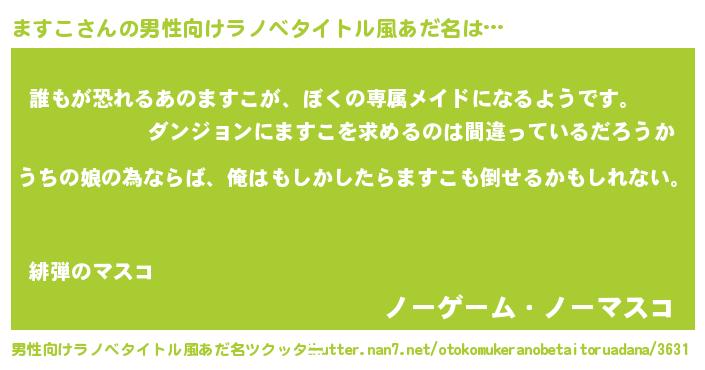 | 女子向けラノベタイトル風あだ名 | 『ますこの婚約者』『死神ますこの再婚』 |