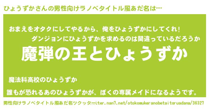 | 女子向けラノベタイトル風あだ名 | 『乙女ゲームの破滅フラグしかない悪役ひょうずかに転生してしまった…』 |