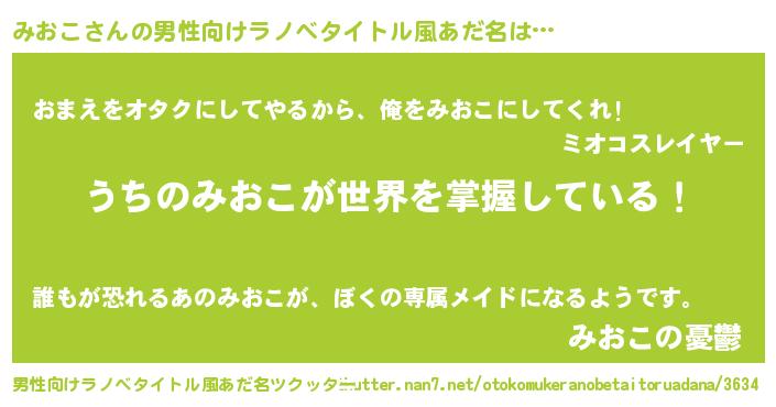 | 意味不明あだ名 | 『眠気覚ましガムみおこ味』『自称みおこ』 |