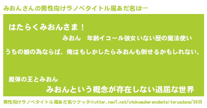 みおんさんの男性向けラノベタイトル風あだ名をツクッター!