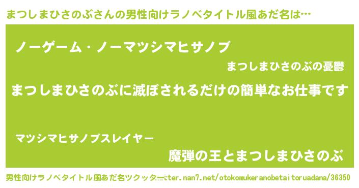 | ヘコむあだ名 | 『まつふぇ~』『まつしまひさのぶ(苦笑)』 |