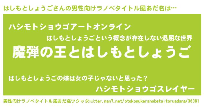 | 意味不明あだ名 | 『住所不定無職はしもとしょうご(4歳)』 |