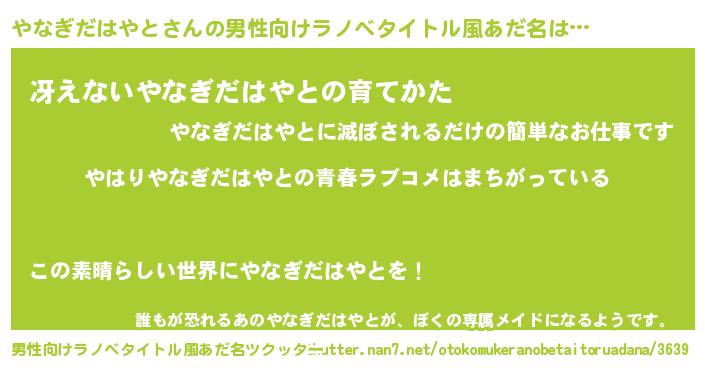 | 女子向けラノベタイトル風あだ名 | 『やなぎだはやとの雑貨屋さん』 |
