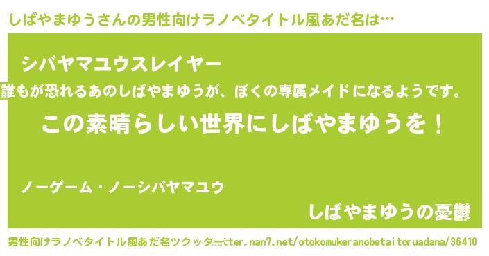 | 女子向けラノベタイトル風あだ名 | 『乙女ゲームの破滅フラグしかない悪役しばやまゆうに転生してしまった…』 |