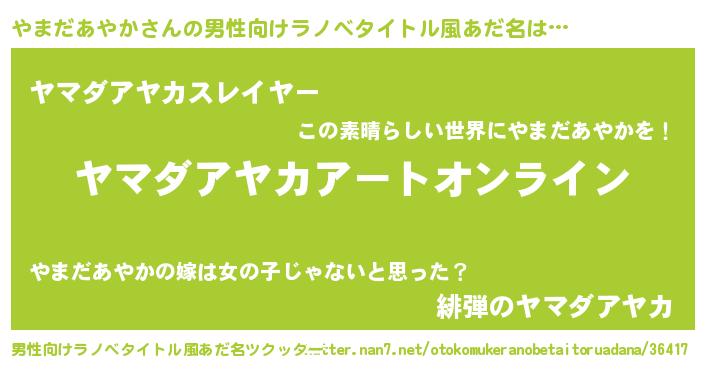 | 女子向けラノベタイトル風あだ名 | 『やまだあやか姫と円卓の騎士』 |