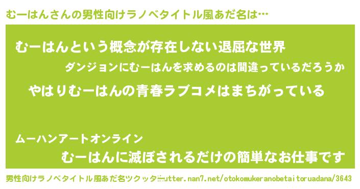 | ヒーロー風カッコイイあだ名 | 『ウルトラむーはんマン』『ネオムーハン』 |