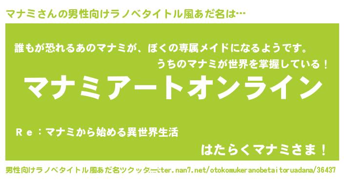 | ファンタジー風あだ名 | 『マナフェル』『マナディッシュ』 |