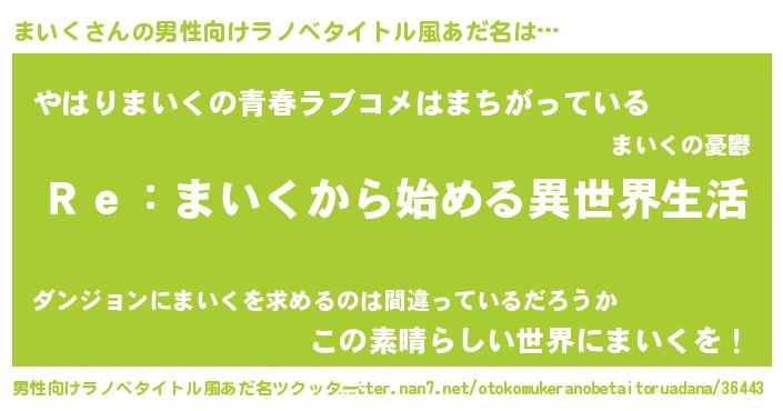 | 肩書あだ名 | 『まいく閣下』『まいく大統領』 |