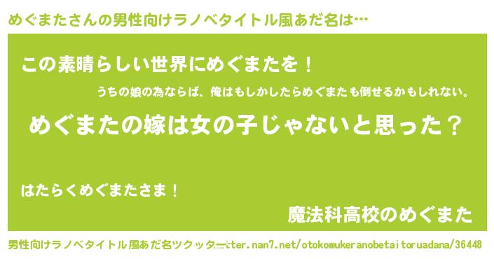 | 意味不明あだ名 | 『とにかく怪しいめぐまた』 |