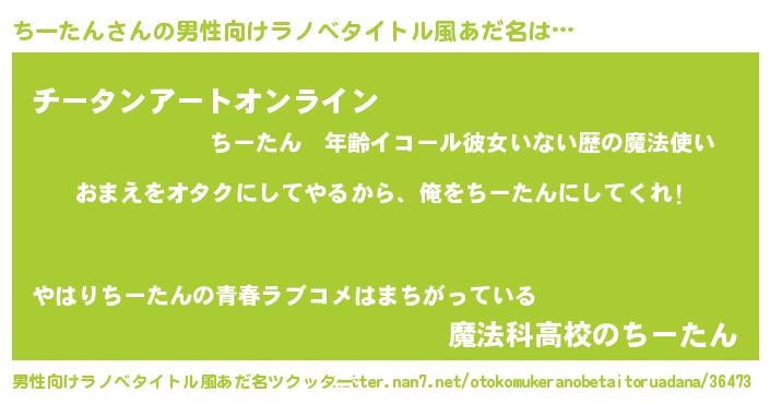 | 胡散臭い通販商品みたいなあだ名 | 『100人中100人が認めたイリジウム磁石…その名も「ちーたん」』 |