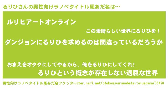 | 意味不明あだ名 | 『とにかく怪しいるりひ』 |
