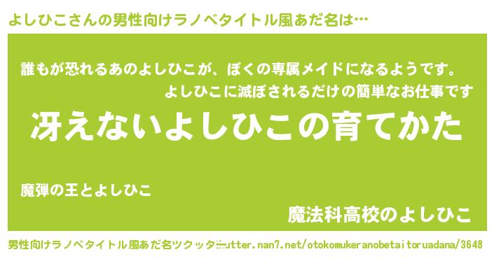 | ヘコむあだ名 | 『よしひこ(笑)』『酢こんぶ』 |
