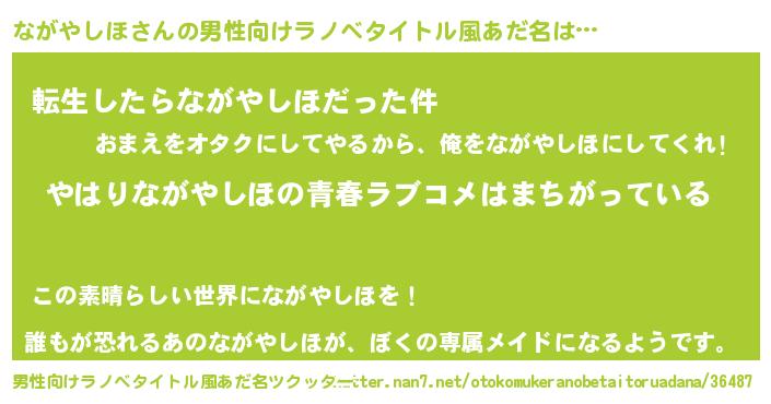 | 女子向けラノベタイトル風あだ名 | 『ながやしほの雑貨屋さん』 |