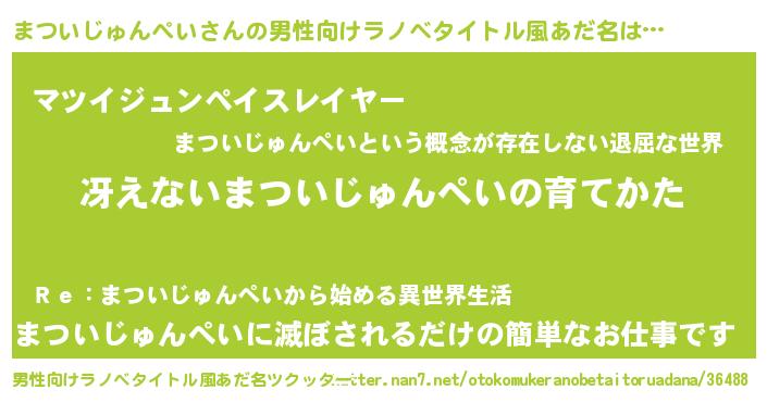 | 意味不明あだ名 | 『なめこ科まついじゅんぺい属』 |
