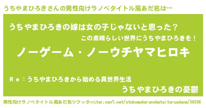 | 女子向けラノベタイトル風あだ名 | 『死神うちやまひろきの再婚』 |