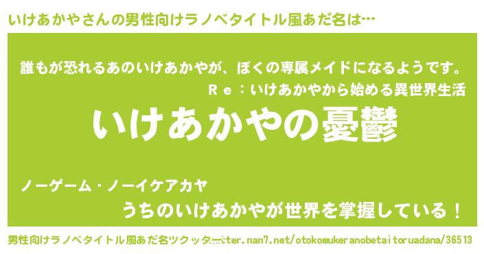 | 女子向けラノベタイトル風あだ名 | 『いけあかや姫と円卓の騎士』 |