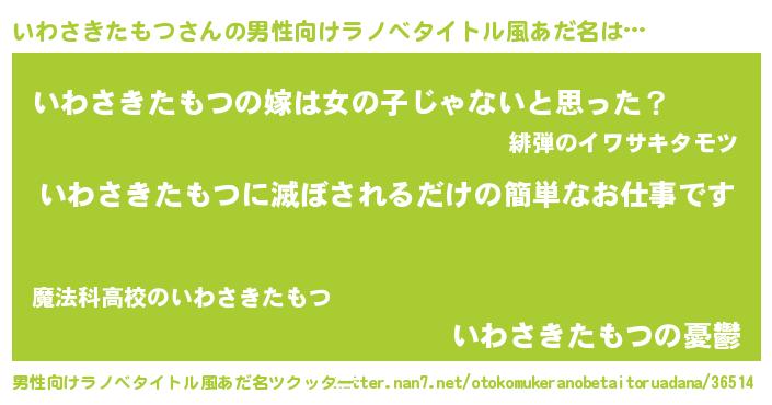 | 意味不明あだ名 | 『とにかく怪しいいわさきたもつ』 |