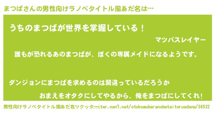| 女子向けラノベタイトル風あだ名 | 『異世界でカフェまつばを開店しました。』 |