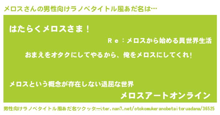 | 女子向けラノベタイトル風あだ名 | 『メロス夫妻のなれそめ』『闇のメロス』 |