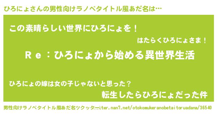 | 女子向けラノベタイトル風あだ名 | 『闇のひろにょ』『ひろにょ様がみてる』 |