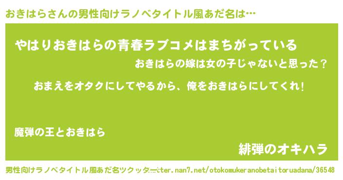 | ヒーロー風カッコイイあだ名 | 『正義の使者おきはら』『天弓騎士オキ』 |