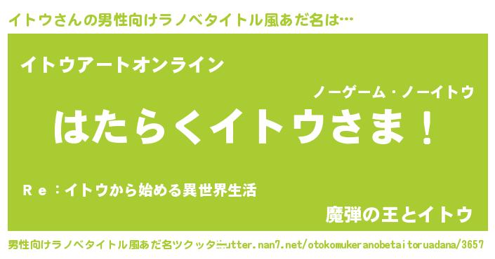 | 胡散臭い通販商品みたいなあだ名 | 『必ず成功するブレスレット…その名も「イトウ」』 |