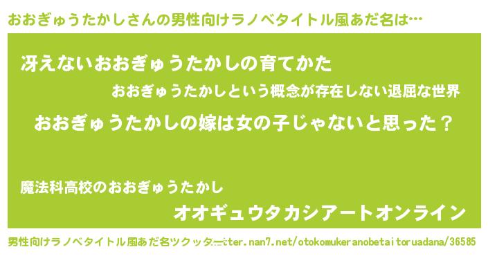 | 意味不明あだ名 | 『とにかく怪しいおおぎゅうたかし』 |