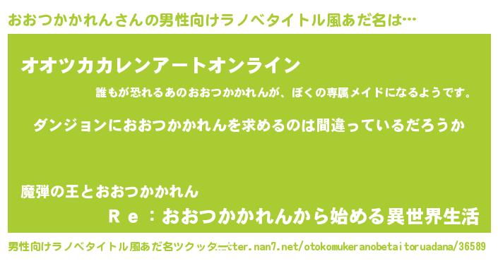 | 女子向けラノベタイトル風あだ名 | 『おおつかかれんは平凡を望む』 |