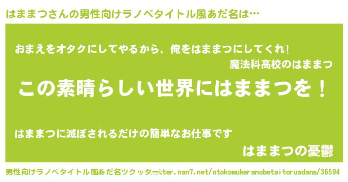 | 女子向けラノベタイトル風あだ名 | 『乙女ゲームの破滅フラグしかない悪役はままつに転生してしまった…』 |