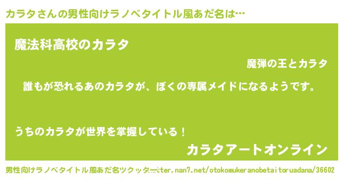 | 胡散臭い通販商品みたいなあだ名 | 『前代未聞の健康食品…その名も「カラタ」』 |