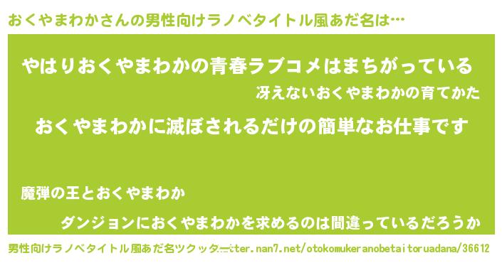 | 女子向けラノベタイトル風あだ名 | 『横柄おくやまわかと宰相陛下』 |