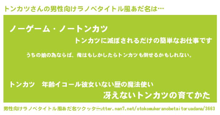 | 女子向けラノベタイトル風あだ名 | 『トンカツの婚約者』 |