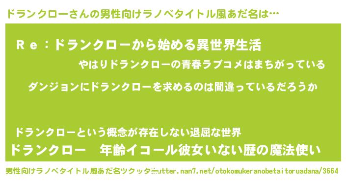 | 女子向けラノベタイトル風あだ名 | 『ドランクローは平凡を望む』 |