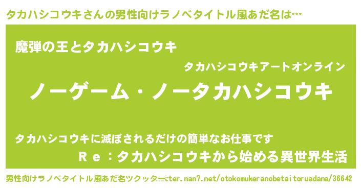 | ヒーロー風カッコイイあだ名 | 『慈愛の使者タカハシコウキ』 |