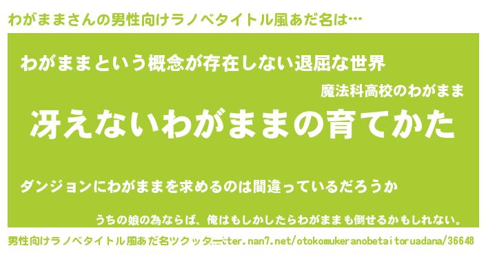| 胡散臭い通販商品みたいなあだ名 | 『来世でも幸せになれる健康食品…その名も「わがまま」』 |