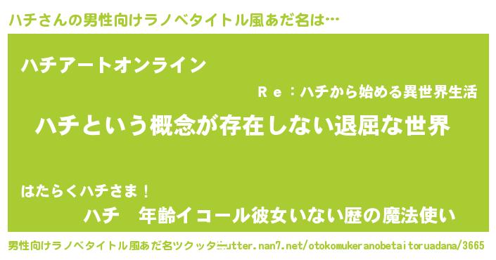 | 胡散臭い通販商品みたいなあだ名 | 『来世でも幸せになれる健康食品…その名も「ハチ」』 |
