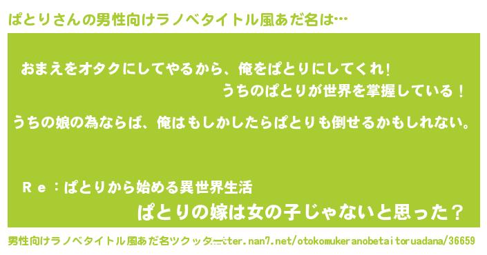 女子向けラノベタイトル風あだ名 | 『ぱとりの婚約者』 |