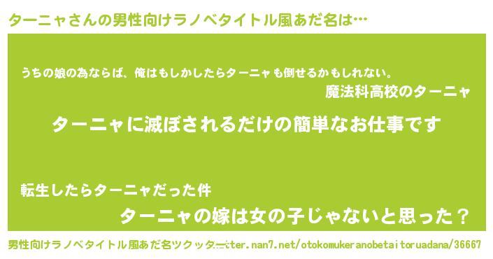 | 意味不明あだ名 | 『ターニャフォーエバー』『自称ターニャ』 |